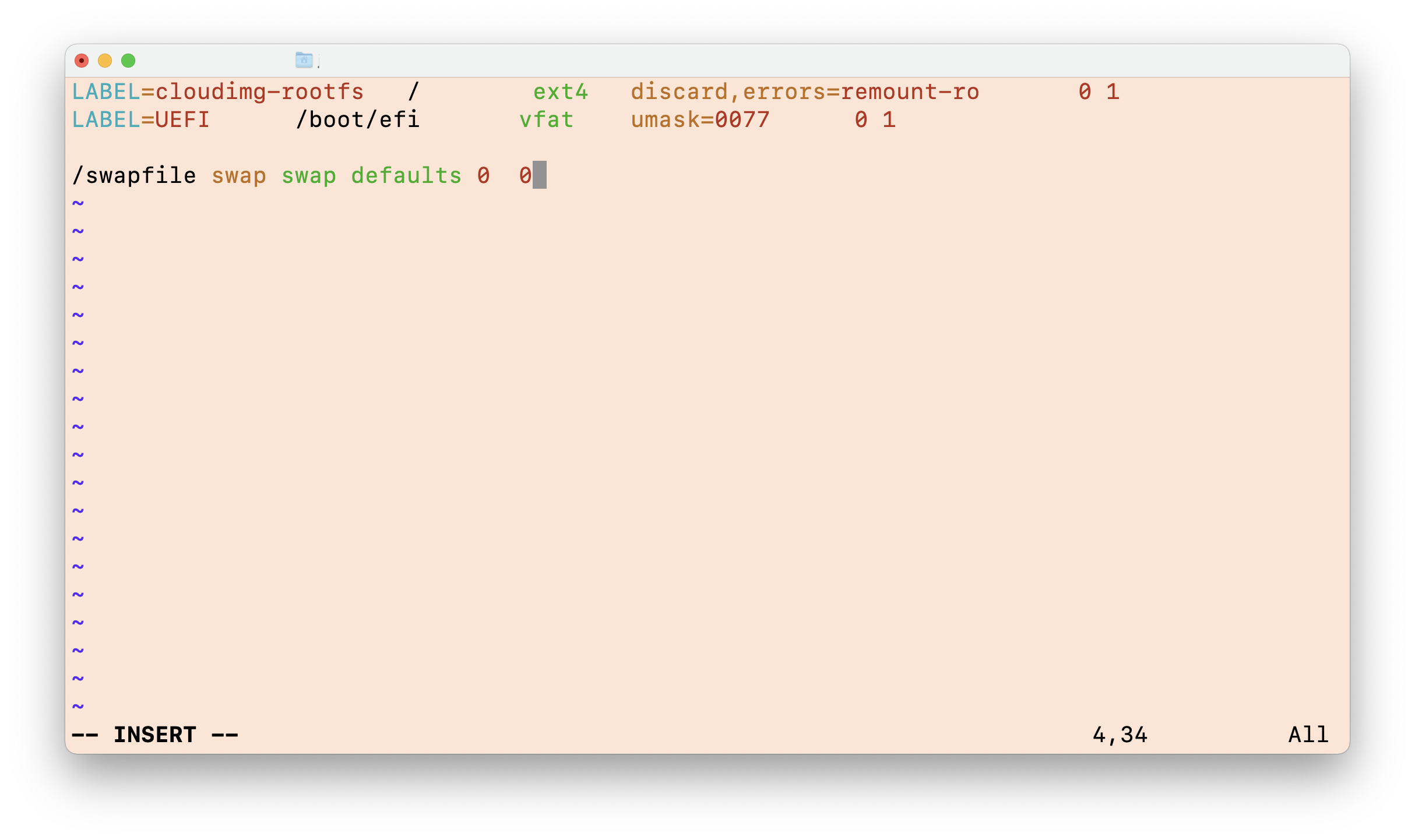 $ sudo vi /etc/fstab