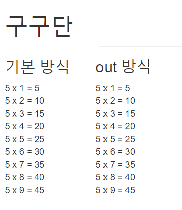 out.println(String.format("<div>%d x %d = %d</div>", dan, i, dan*i));