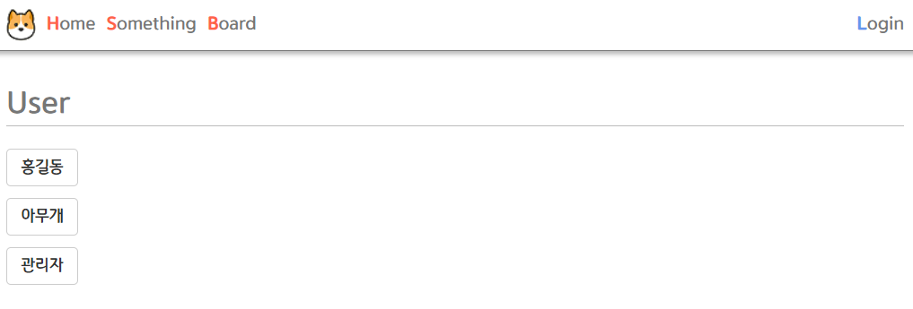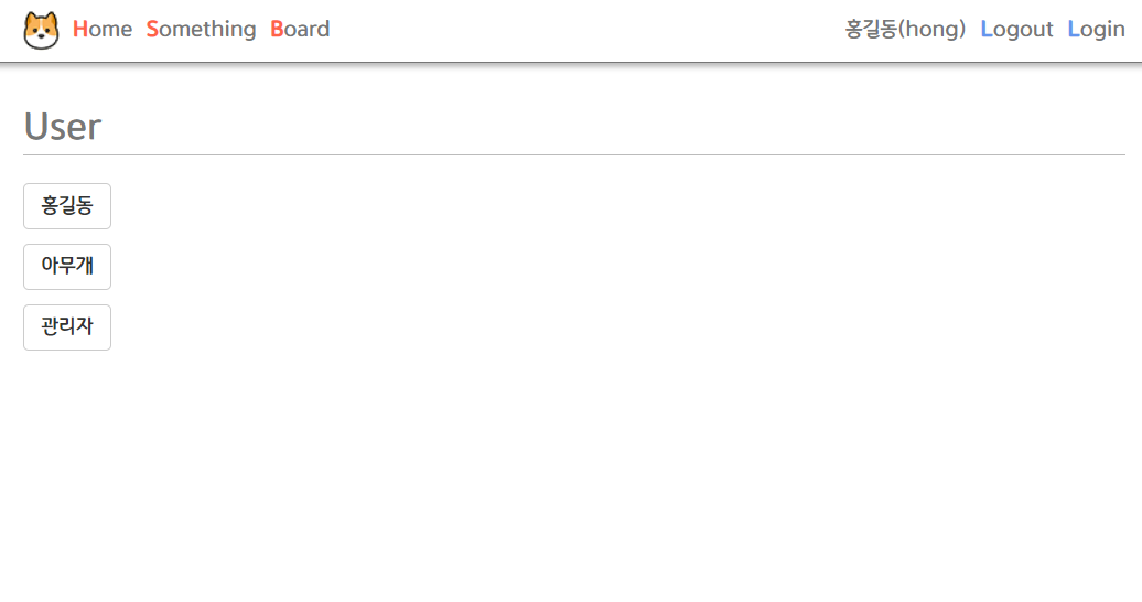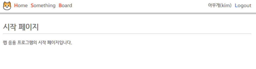 아무개로 로그인하였으며, 이제는 이름(아이디)와 Logout이 보이게 된다.