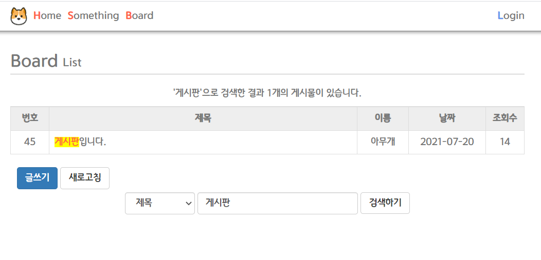 - 제목, 내용, 이름, 제목+내용별 검색을 할 수 있다.