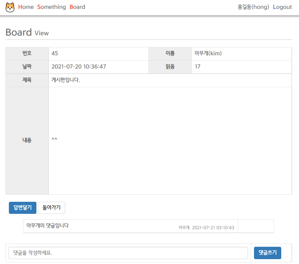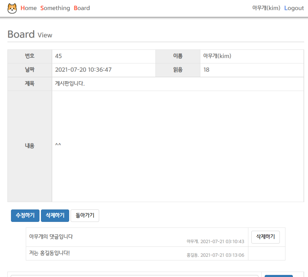 글 작성자와 댓글 작성자 모두 다른 사용자가 올린것 이므로, 수정/삭제 버튼이 없다!