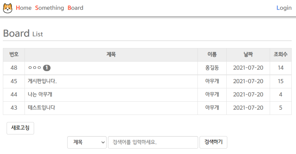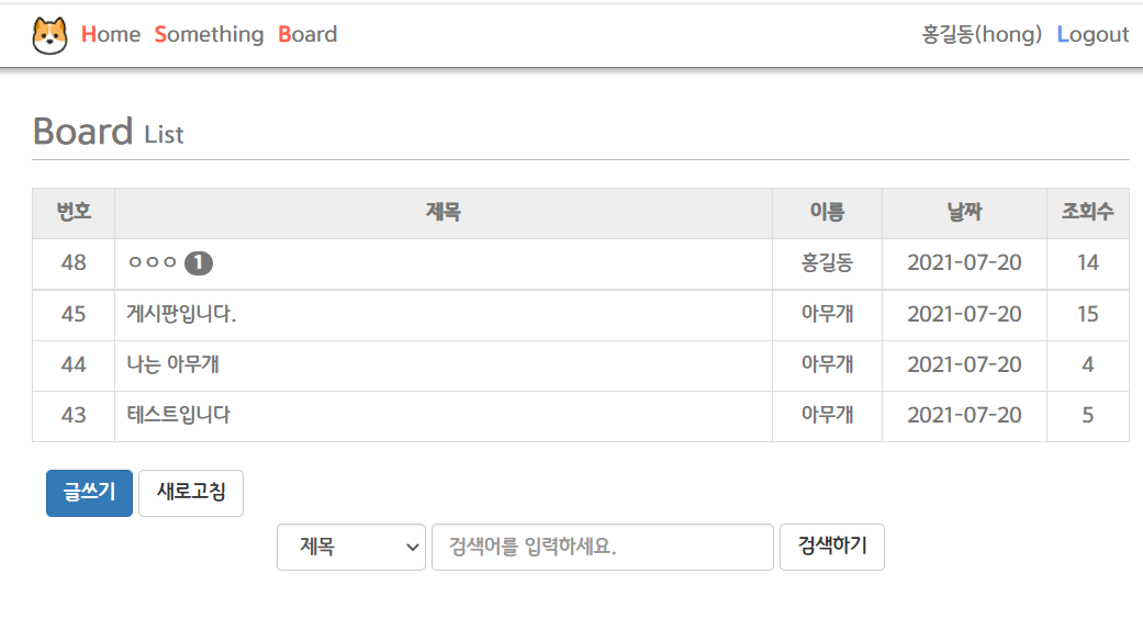 - 로그인 했을때 보여지는 게시판 리스트 페이지