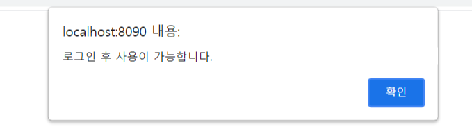 - HttpSession을 이용해서 session에 아이디가 존재하지 않다면 팝업창으로 경고메시지를 띄우게 하기