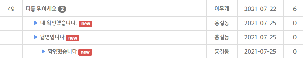 - 게시판 글의 답변 번호는 보이지 않게 한다.